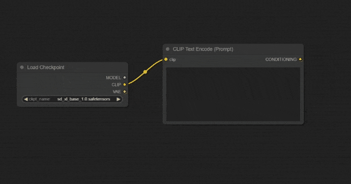 Nút CLIP Text Encode Đầu ra CLIP của nút Load Checkpoint được kết nối với các nút CLIP Text Encode.